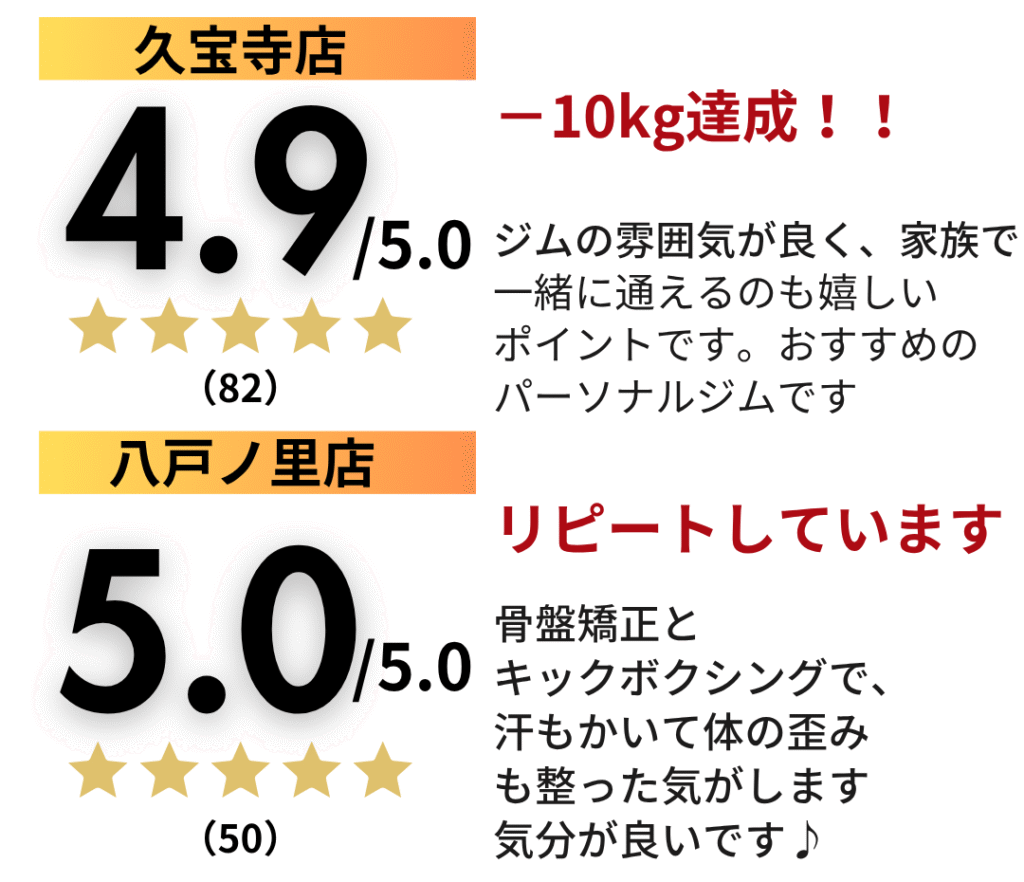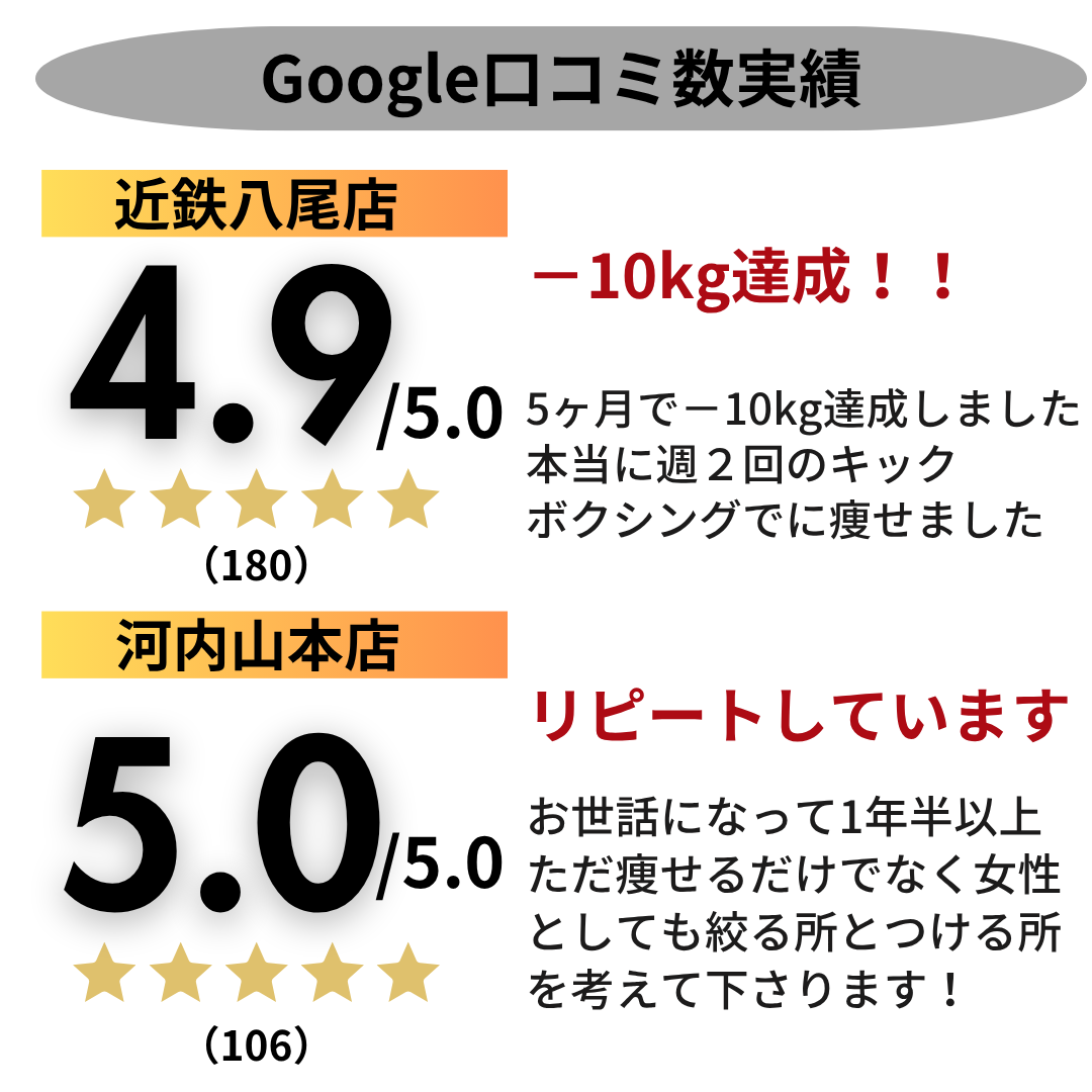 1ヶ月で-3kg、3ヶ月で-5kg、体脂肪率がガクッと落ち、ありがたい事に皆様見事に痩せられております✨