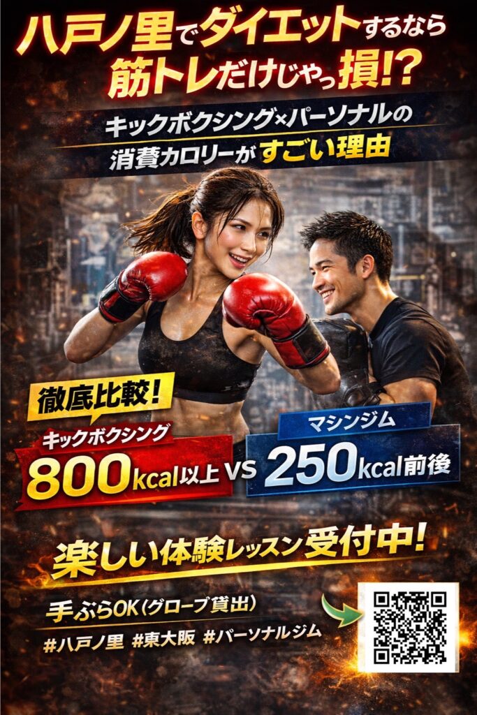 八戸ノ里でダイエットするなら筋トレだけじゃ損?キックボクシング×パーソナルの消費カロリーがすごい理由【Google口コミ数No.1】