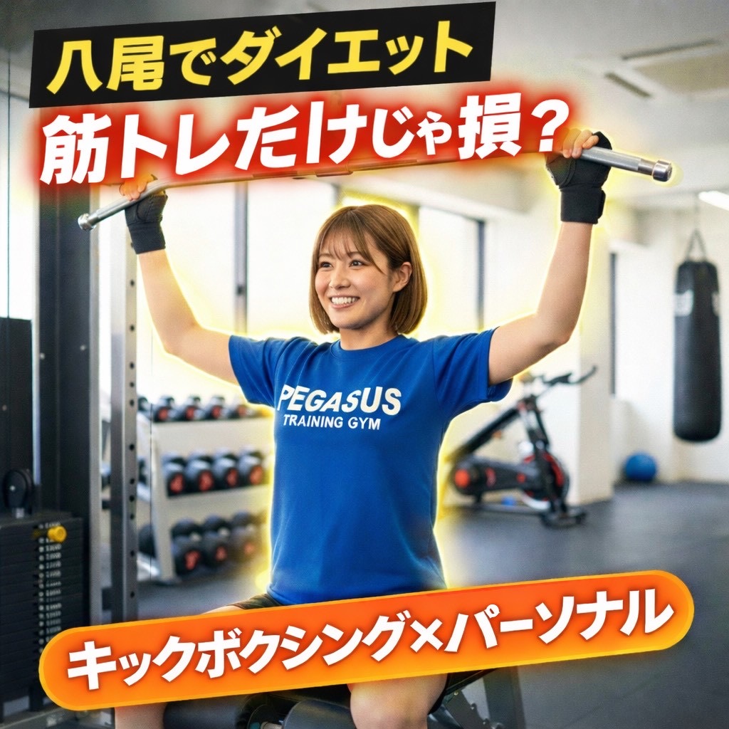ペガサスはマンツーマン中心なので、今日やる内容が最初から決まっているのが大きいです。さらに、内容は筋トレ・自重・姿勢(骨盤まわりの調整)・HIIT・キックなどから、目的に合わせて組み替えます。 [oai_citation:0‡ペガサス](https://pegasasu0305.com/%E3%83%9A%E3%82%AC%E3%82%B5%E3%82%B9%E3%83%88%E3%83%AC%E3%83%BC%E3%83%8B%E3%83%B3%E3%82%B0%E3%82%B8%E3%83%A0%E5%85%AB%E5%B0%BE%E8%BF%91%E9%89%84%E5%85%AB%E5%B0%BE%E5%BA%97%E5%A4%A7%E9%98%AA%E5%BA%9C/?utm_source=chatgpt.com)
