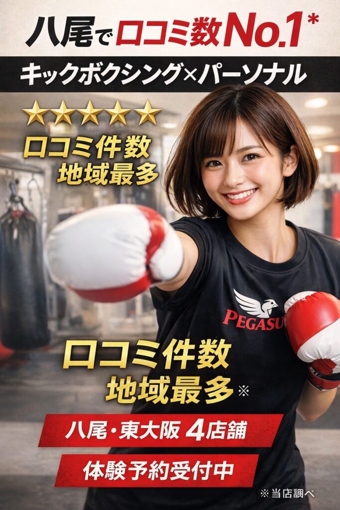 「八尾でキックボクシングの口コミが良いジムってどこ?」「八尾ジムおすすめって結局どこが安心?」そんな疑問に答えるために、ペガサストレーニングジムが“選ばれ続ける理由”を、できるだけ具体的にまとめました。大手・格安ジムと迷っている方ほど、比... -